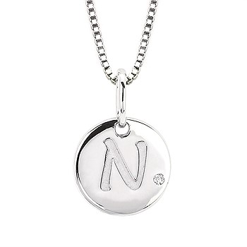 Diva Diamonds® Letter N Pendant In Sterling Silver With .01 Ct. Diamond With 18" Box Chain (Adjustable To 16") And Lobster Claw Clasp Sterling Silver Diamond Initial N Pendant with 16" Chain and 2" Extender
