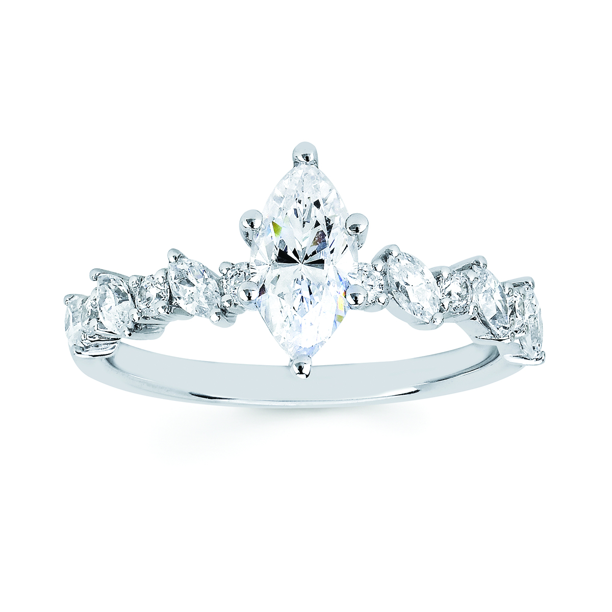 Engagement Ring Modern Bridal: 1/2 Ctw. Diamond Semi Mount shown with a 3/4 Ct. Marquise Center Diamond in 14K Gold