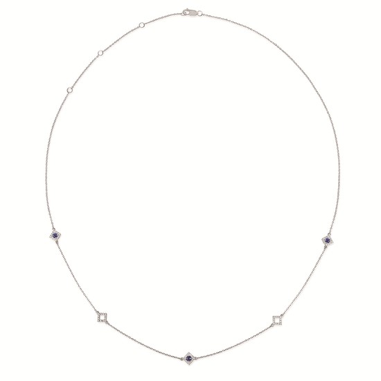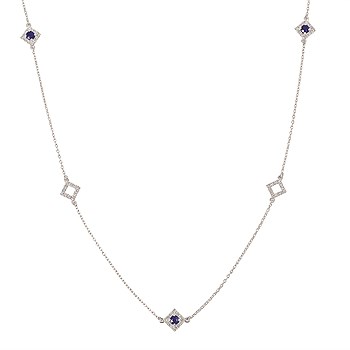 1/2 Tgw. Diamond & Sapphire Station Necklace In 14K Gold With 18" Chain
