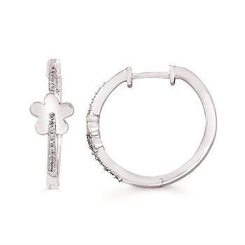 1/10 Ctw. Diamond Flower Hoop Earrings In Sterling Silver